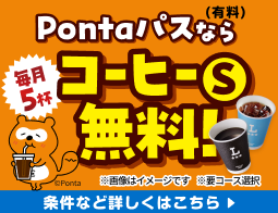 Pontaパスなら、毎月5杯コーヒーS無料♪